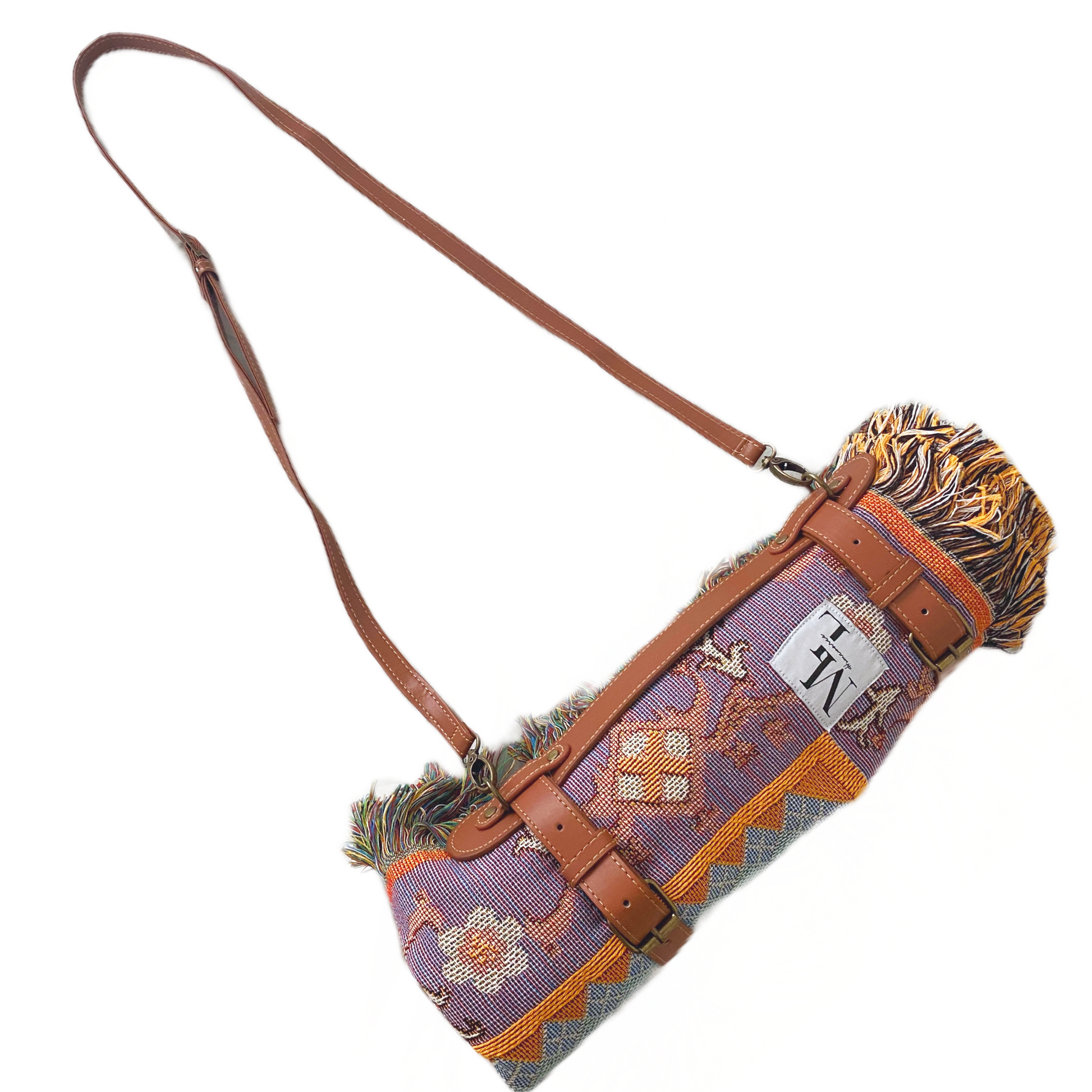 Our adjustable, faux leather shoulder carry strap pairs perfectly with our picnic blankets! They leave more hands for snacks, drinks, kids… you name it!